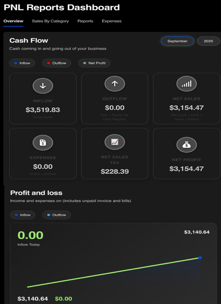 Liive sales, product mix, peak hours heatmap, campaign ROI, labor vs. sales, ticket times, wastage.