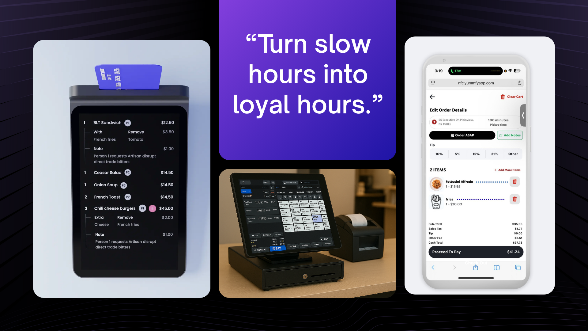 Lightning-fast order flow, modifiers & upsells, kitchen/barista ticketing, cash drawer & receipt printing, customer display.